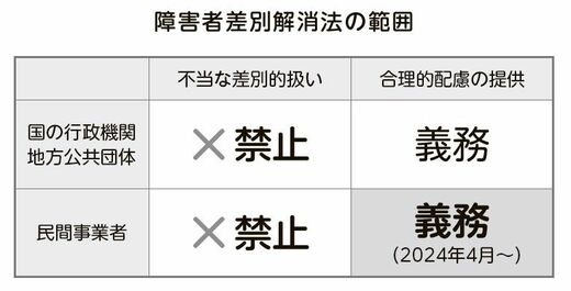 2024年4月以降、前述の例は法律に違反する可能性があります。「障害者差別解消法」の改正により、障害者に対する合理的配慮の提供が民間事業者にも義務づけられたためです。