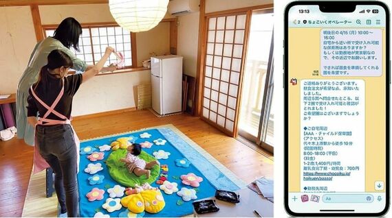 一時保育可能な保育施設を検索し予約などをLINE上で行える「ちょこいく」。専属オペレーターが対応し、きめ細かで利用者のニーズに沿ったアドバイスをもらえるのも特徴。保育施設では保護者を招いたイベントも開催 (写真:日本生命)