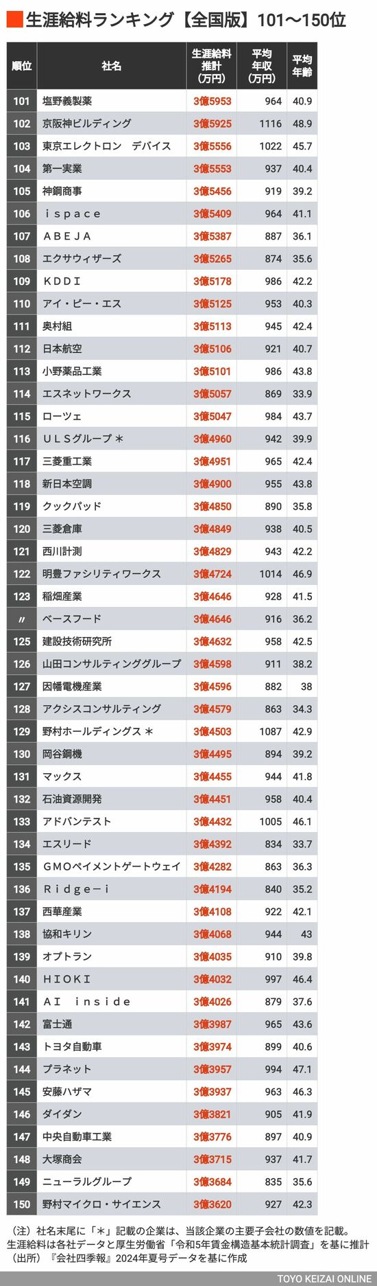 政治・経済・投資 #賃金・生涯給料ランキング 前の記事 次の記事 1位は10億超!生涯給料が高い「全国トップ500社」 生涯給料が3億円以上となったのは340社 3分で読める 公開日時:2024/10/19 05:00 東洋経済オンライン編集部 フォロー 1/11 PAGES 2/11 PAGES 3/11 PAGES 4/11 PAGES 101〜150位 次ページが続きます 5/11 PAGES 6/11 PAGES 7/11 PAGES 8/11 PAGES 9/11 PAGES 10/11 PAGES 11/11 PAGES