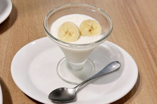 バナナヨーグルトは、砂糖なしのプレーンヨーグルトにほんのり甘いカットバナナ3つ入り。ヨーグルトの酸味でさっぱりしつつ、ねっとりしたバナナの食感で、しっかり食べた感があります。