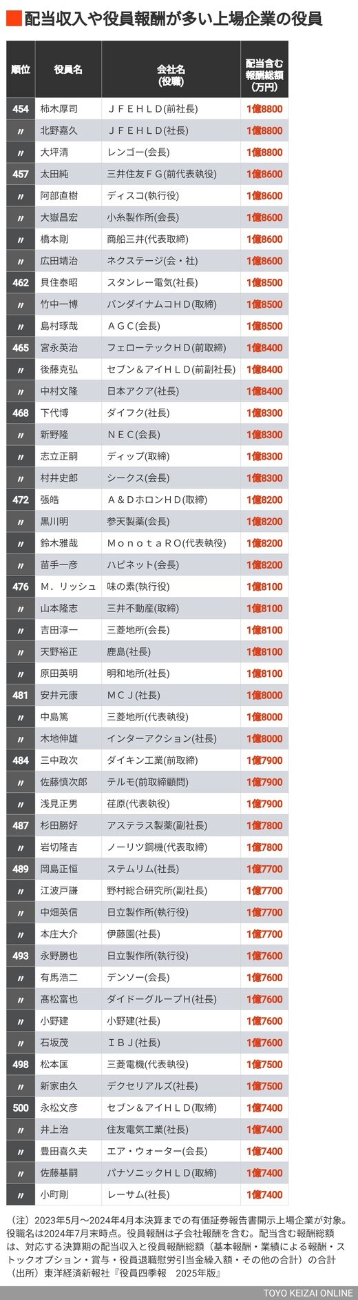 政治・経済・投資 #賃金・生涯給料ランキング 前の記事 次の記事 配当含む「年収1億円超」経営者ランキング500 首位は188億円、トップ10に柳井家から3人ランクイン 2分で読める 公開日時:2024/10/26 05:30 『役員四季報』編集部 フォロー 1/11 PAGES 2/11 PAGES 3/11 PAGES 4/11 PAGES 5/11 PAGES 6/11 PAGES 7/11 PAGES 8/11 PAGES 9/11 PAGES 10/11 PAGES 11/11 PAGES 最後に454~500位