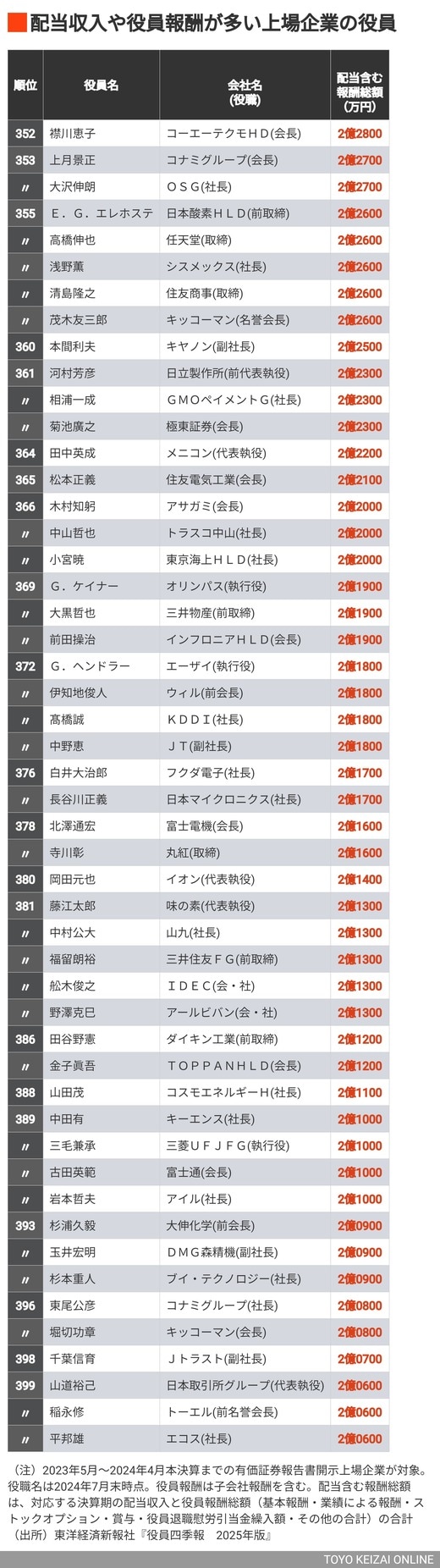 政治・経済・投資 #賃金・生涯給料ランキング 前の記事 次の記事 配当含む「年収1億円超」経営者ランキング500 首位は188億円、トップ10に柳井家から3人ランクイン 2分で読める 公開日時:2024/10/26 05:30 『役員四季報』編集部 フォロー 1/11 PAGES 2/11 PAGES 3/11 PAGES 4/11 PAGES 5/11 PAGES 6/11 PAGES 7/11 PAGES 8/11 PAGES 9/11 PAGES 次は352~399位 次ページが続きます 10/11 PAGES 11/11 PAGES