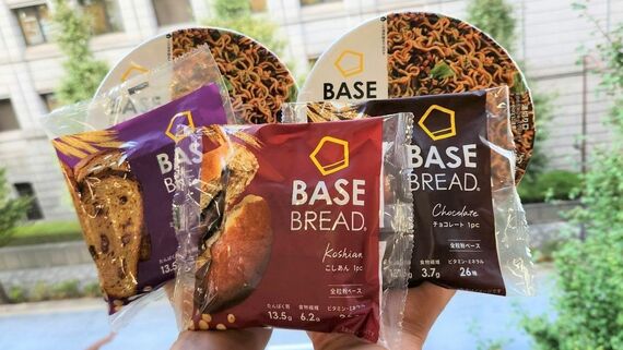 ベースフードの旗艦商品は、賞味期限が1カ月程度と長いベースブレッド。小売店では、賞味期限の短い通常のパンと分けて並べられているケースが多い。これまで順調に配荷店舗数や売り上げを伸ばしてきた。