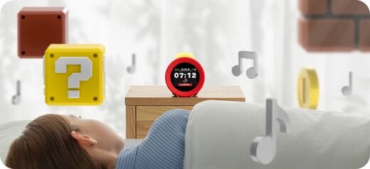 たとえば時計の前で左右に動くと、画面の中のマリオも同様に動いたり、あるいはジャンプするなどのアクションを起こす。アラームが鳴るときにも活用されており、寝返りすればコインの音が鳴り、ベッドから降りると自動的に音が鳴り止む仕組みだ(ボタンでも止めることは可能)。
