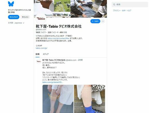 その一例が、靴下専門ブランドのタビオだ。タビオは、Blueskyの一般公開と同時にアカウントを開設し、その日のうちにカスタムフィードも実装するなど、新しいプラットフォームに対して積極的な姿勢を見せている。