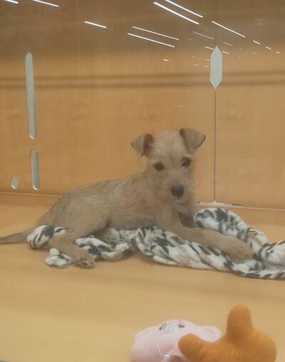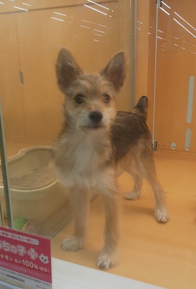 ペットショップの店頭に並ぶミックス犬(ミニチュア・シュナウザー×イタリアン・グレーハウンド)(写真:筆者撮影)
