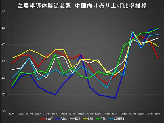 双方の思惑が一致した結果、対中売上比率は上昇した。もちろん現在中国向けに販売されている装置は輸出規制に基づいて許可を得た製品だけである。それでも中国が装置を爆買いして、装置メーカーの業績を下支えしたのは確かだ。だが、最近のASMLなどの受注残高発表を見ると中国バブルも終焉が近づいているようにみえる。