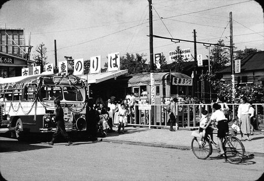 しかし、当時を知る人によれば、この位置に乗り場があったのは、廃止直前のほんの1~2年間のことであり、それ以前はもっと国鉄(現・JR)駅寄りの場所、現在は箱根登山バス、伊豆箱根バスの案内所になっているビルの位置にあったという。1954~1955年度に行われた小田原駅前整備拡張工事(1955年10月13日竣工)に伴い、乗り場が移設されたのだ。