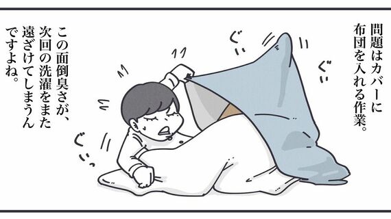 とにかくつらい「布団シーツの洗濯」乗り切る秘儀 漫画「丁寧ならぬ暮らし」(第35話)