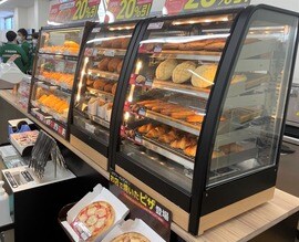 足元では一部店舗に小型オーブンを設置し、焼きたてのピザやメロンパンを提供する取り組みを進める。こちらも同じ生地系の商品だ。