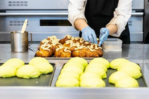 まず同チェーンのビジネスモデルは、冷凍した生地を各店舗に送り、店舗で焼き上げる方法。パン製造の中でも技術習得が難しい生地作りを本部で行うため、店舗の負担が抑えられる。同じスタイルのチェーンに2020年にオープンした「小麦の奴隷」があるが、ペンギンベーカリーでは2店舗目を出店した2017年から、この方法をとってきたそうだ。