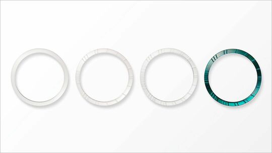 「航跡」が出現したのは、サファイアガラスが用いられたベゼル。これまでの歩みを振り返るという意味が込められている。