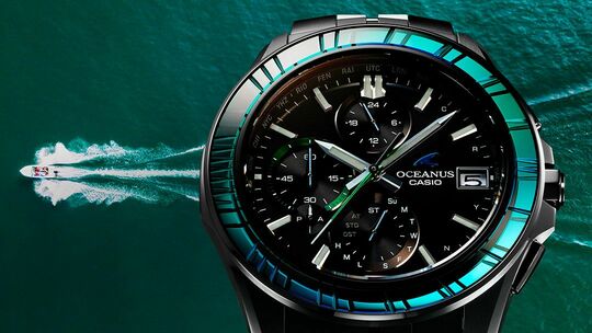 機能や質感も優れている。スマートフォンと連携して正しい時刻に自動補正できるBluetooth搭載電波ソーラーモデルでありながら、9.8mmという薄型ケースを実現。高度な計時機能を持つ多針クロノグラフや強靭で軽量なチタン素材など、オシアナスを象徴する記念モデルにふさわしい性能を有している。