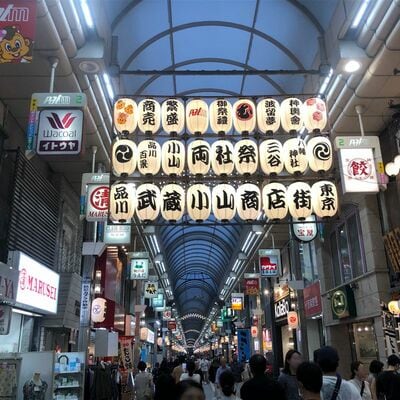 東京でも有数の長さ(800m)と賑わいを誇り、地元住民からも愛される武蔵小山商店街。すでに駅側の商店街入り口付近には、タワマン2棟がそびえ立つ。