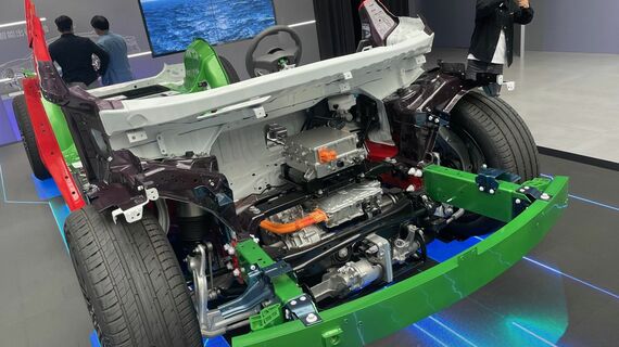 杭州湾工場のギガキャストで作られる部品はSAEプラットフォームと呼ばれ、A〜Eセグメントサイズに対応できるとしている。このプラットフォームには200億元(約4000億円)以上の投資をしたというのだから、スケールはデカい。SAEプラットフォームの特徴は、ギガキャストの採用と同時にサイドシル構造にもある。ハニカムではないが、何やら四角いプレートが挟み込まれた構造で、サイドインパクトやオフセット衝突で順番に潰れていく構造としていて、世界初の構造だと説明している。