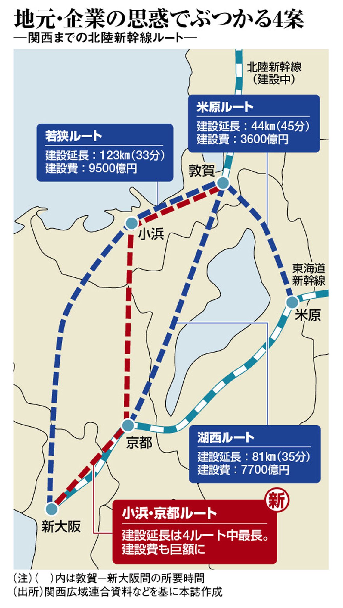 そんな矢先、浮上した新たなアイデアは、小浜市を経由して京都駅に乗り入れる「小浜・京都ルート」。東海道新幹線に乗り入れず、京都─新大阪間は新たに設ける地下トンネルで結ぶ。