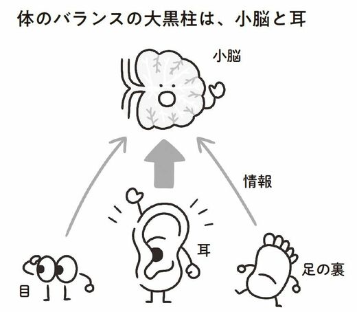 私たちの体はバランスをたもつために、目、耳、足の裏からの情報を小脳がまとめ、それを大脳に伝えています。この目、耳、足の裏のうち、小脳がもっとも頼りにしている情報収集役が「耳」です。