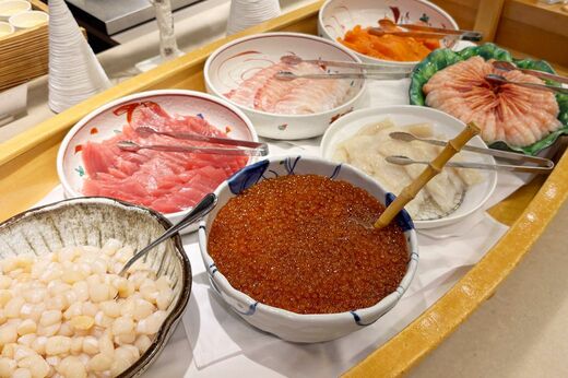 このレベルの海鮮丼を、向かいの千客万来や築地の場外市場で食べたら、この朝食バイキングよりもお高くなるかも……。それぐらいの値打ちを感じる1杯でした。
