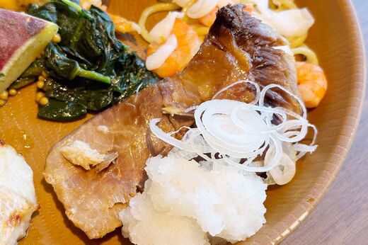 マグロのかま焼きは、豊洲市場に隣接する「ラビスタ東京ベイ」ならではのメニューです。顎の部分を焼いた料理で、しっかり脂が乗ってみっしり詰まった身を香ばしく焼かれてあり、おいしさが詰まった1品。