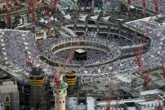 9月11日、イスラム教の聖地カーバ神殿がある聖モスクに向かってクレーンが倒れる事故が発生し、少なくとも107人が死亡した。写真は同所に集まる信者ら。7月撮影(2015年 ロイター/Ali Al Qarni)
