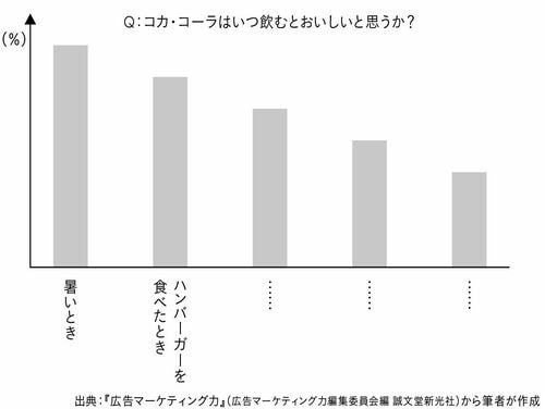 あなたは、コカ・コーラを売る仕事をしていて、「マンネリ化したこれまでとは違う、新しい広告を作って、コカ・コーラをもっと売りたい!」と考えているとしましょう。そのために、次のグラフを見たとして、どんな情報が得られるかを考えてみてください。どんなことがわかりますか?
