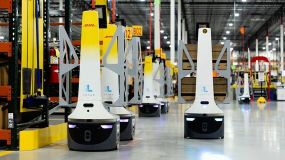 テネシー州ナッシュビル近郊にあるアマゾンの倉庫の出荷場では先日、カーディナルというロボットアームがテトリスのような動きで高さ約2メートルの台車に荷物を積み上げていた。荷物が積まれた台車を搬出口に移動するのが自律型ロボットのプロテウスだ。プロテウスは目を光らせて、自らの存在を職場の人間にアピールする。
