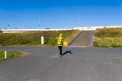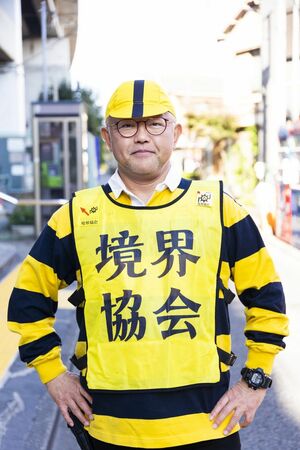 小菅駅に現れた小林さんはまず「境界協会」と書かれた派手な黄色のビブスを身につけた。ツアーへの期待感が一気に高まった瞬間だ。
