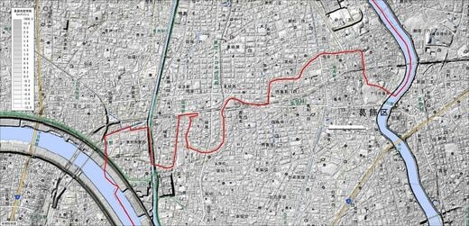 しかし、治水工事によって古隅田川はせき止められ、両区の境界線だけがそのまま残ったというわけだ。「古隅田川の延長線上が、先ほどの荒川河川敷の境界線にあたるのです」。