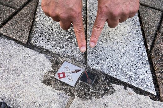 このマンションの前には足立区と葛飾区の「境界標」があった。両区の境界標は仲睦まじく肩を寄せ合う恋人のように並んでつくられていて、小林さんはこの状態を「キスマーク」と呼ぶ。「このキスマークを見つけると嬉しく達成感があります」