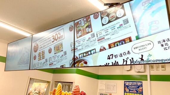 このサイネージを展開するのが、ファミマ子会社のゲート・ワン。2021年から同事業を始め、今や国内の6割超に当たる約1万店に設置されている。収入源はここで流す広告で、2023年度に黒字化を果たした。