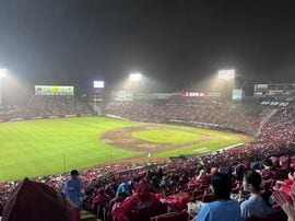 この球場は、東京ドーム、エスコンフィールドとともにキャッシュレス決済で現金が使えないが、年配の観客が戸惑う風景がよく見られる。また楽天はチケットのダイナミックプライシングを導入しているが、他球場に比べて入場料は割高感がある。今季は後半、追い込みで観客が入り、昨年の1万8868人を大きく上回る2万3132人が入ったが。それでも動員率は74%だ。スター不在の地味なチームでもあり、決め手に欠くという印象だ。
