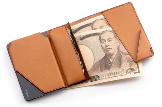 しかし大きく違うのは、カードケースが外側、コインケースが折り曲げる側に配置されていること。そしてカードの右下端が空いていることで、カードの出し入れがスムーズになると同時に、ここが財布を閉じた時の留め具にもなります。実はこれ、慣れれば片手でも開閉できてとても便利。素晴らしいアイデアだと思います。