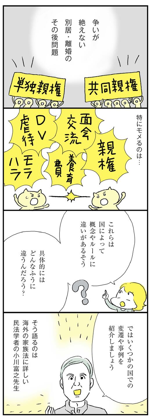 キーワードは、今年5月に国会で可決された「共同親権」。前回は「共同親権がモメるワケ」、今回は「親権の海外事情」についてです。今回も家族法学者の小川富之先生に伺いました。
