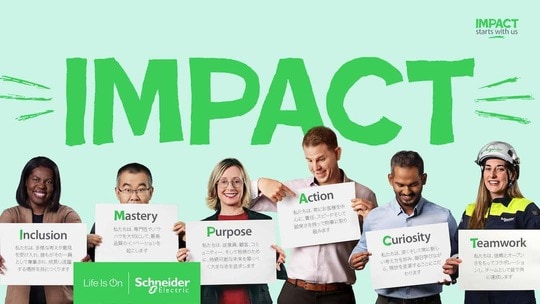 「シュナイダーエレクトリックは、『あらゆる人がエネルギーや資源を最大限活用することを可能にし、進歩と持続可能性を同時に実現することによってインパクトをもたらす』をパーパスとしています。