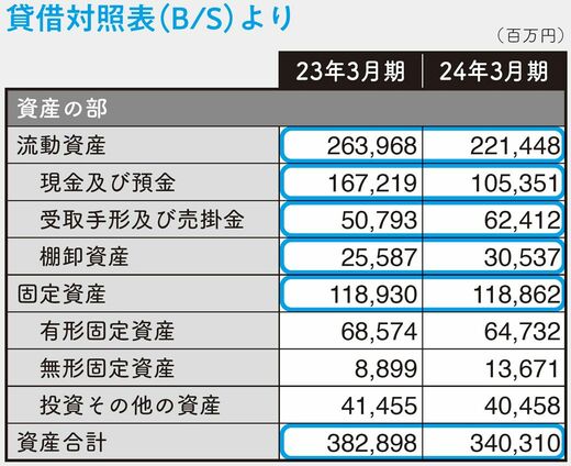 なかでも減ったのが現預金で、前期から619億円(37.0%)減少。一方で、売上債権は22.9%増、棚卸資産は19.3%増と、いずれも前期から増えました。