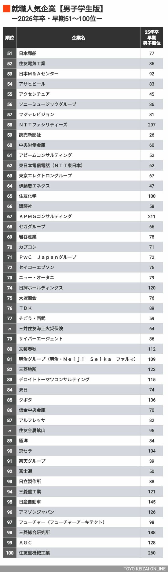 キャリア・教育 #就職四季報プラスワン 前の記事 次の記事 男子・女子学生が選んだ「就職人気ランキング」 「男子・女子・文系・理系」属性別の人気企業は? 3分で読める 公開日時:2024/12/09 05:30 東洋経済オンライン編集部 フォロー 1/9 PAGES 2/9 PAGES 3/9 PAGES 男子51~100位 次ページが続きます 4/9 PAGES 5/9 PAGES 6/9 PAGES 7/9 PAGES 8/9 PAGES 9/9 PAGES