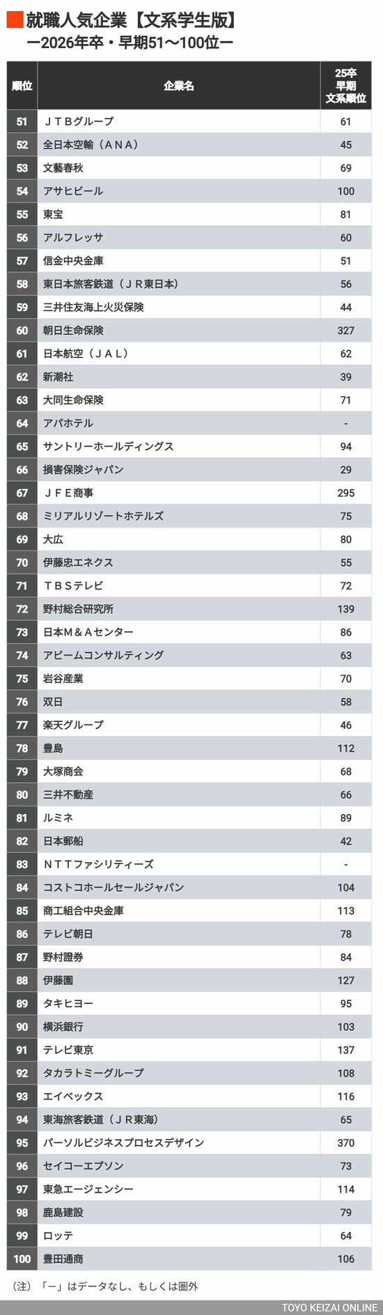 キャリア・教育 #就職四季報プラスワン 前の記事 次の記事 男子・女子学生が選んだ「就職人気ランキング」 「男子・女子・文系・理系」属性別の人気企業は? 3分で読める 公開日時:2024/12/09 05:30 東洋経済オンライン編集部 フォロー 1/9 PAGES 2/9 PAGES 3/9 PAGES 4/9 PAGES 5/9 PAGES 6/9 PAGES 7/9 PAGES 文系51~100位 次ページが続きます 8/9 PAGES 9/9 PAGES