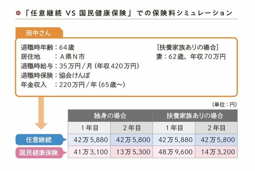 ただし、保険料は、扶養家族の有無や人数、退職前の給与など個々のケースで異なるため、どちらがオトクかは実際のケースごとに計算してみないとわかりません。