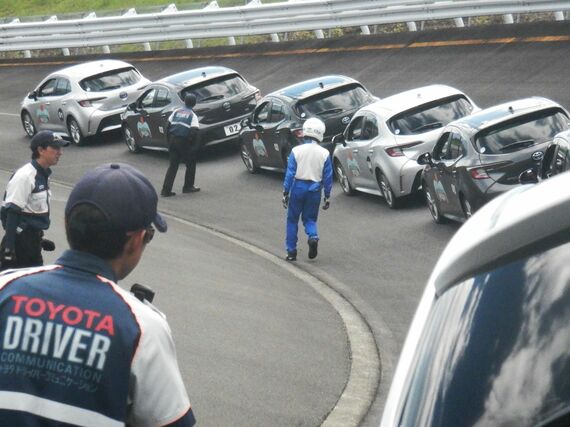 講習は、乗用車の死角確認/正しい運転姿勢/低ミュー路面や高速域からのブレーキ/特殊ゴーグルを使った飲酒運転疑似体験など、トヨタがモビリタで通常行っている「総合トレーニング」に、ホンダが提案した「二輪車の特性を理解した交差点の通行」を特別メニューとして加えられた。