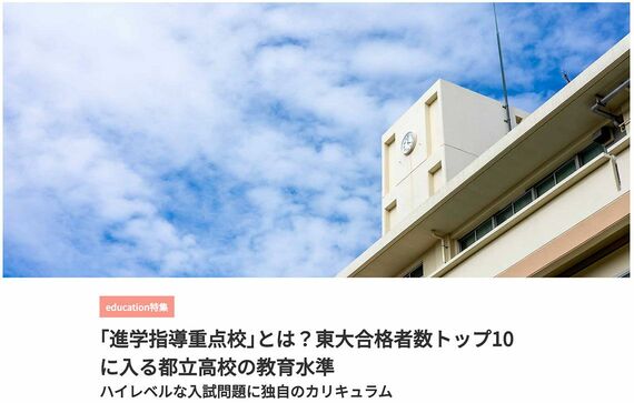 日比谷高校という、東大合格者数が多い高校トップ10に毎年ランクインする都立高校がある。この学校、東京都教育委員会から「進学指導重点校」に指定されており、大学進学指導に重点が置かれているのだ。