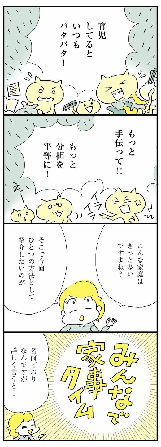 今回のテーマは「子どもと家事」です。以前、この連載で子どもが積極的に家事参加するようになる「かじとりゲーム」を紹介しましたが、今回は家事をやるタイミングを工夫する「みんなで家事タイム」を紹介します。