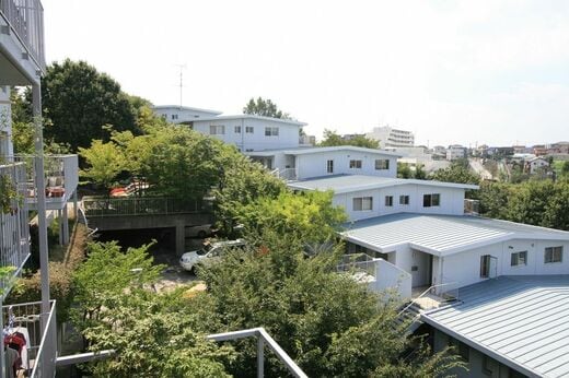 東急田園都市線の鷺沼駅からバスに揺られて約20分。バス停を降りて丘に向かうと、森のような場所がある。樹木が生い茂る中に「ヒルサイド久末」は建っていた。筆者が歩いたときは、雨上がりで緑がみずみずしく、セミの声が鳴り響いていた。