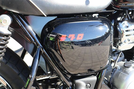 例えば、メグロS1の燃料タンクには、クロームメッキとブラックのツートンカラーに、「MEGURO」の車名ロゴを入れたオリジナルの立体エンブレムを装備する。対するW230の燃料タンクには、「W」のロゴ入り立体エンブレムを採用する。また、メグロS1では、エンジンの空冷フィンにも切削加工を施すことで、光が当たると輝く工夫も実施。加えて、サイドカバーや2連メーター内などには、レトロなカタカナ書体の「メグロ」ロゴも入れるなど、細部に質感を高める数多くのギミックが施されている。