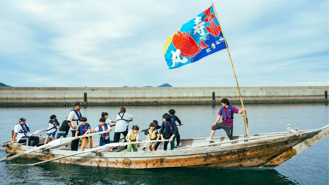 スタジアムではロッカールームやVIPルームなど、普段は立ち入ることができないエリアを見て回り、ユニフォームの設置や練習着の整理などを行った。宮窪漁協では、潜水漁の見学と船に乗って来島海峡の急流を体験し、実際に村上海賊の時代に使われていた船をみんなで漕いだ(タイトル上の写真)。