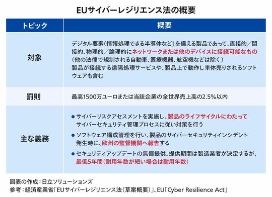 つまり、EU圏内での拠点の有無にかかわらず、EUにネットワークにつながるデジタル製品を販売している日本企業は、この法律の影響を受けることになる。違反に対する罰則規定もあるため、対象企業には適切な対応が求められる。