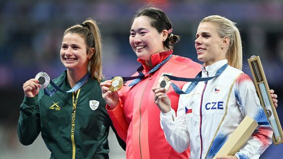 女子やり投げのパリ五輪金メダリスト・北口榛花(中央)の優勝に期待(撮影:松尾/アフロスポーツ)