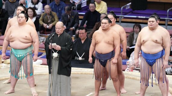 左から琴櫻、八角理事長、豊昇龍、大の里(写真:日刊スポーツ/アフロ)