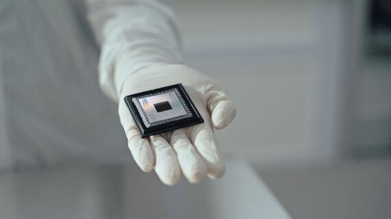 グーグルが開発した、「Willow(ウィロー)」と呼ばれるコンピューターチップ(写真:Google Quantum AI via The New York Times)