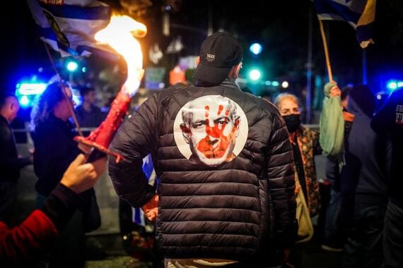 ネタニヤフ首相に抗議するイスラエル国内のデモ(筆者撮影)
