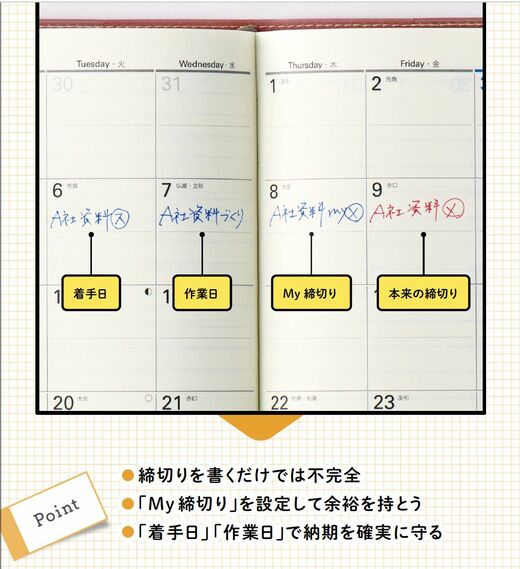 「My締め切り」は自分と交わす約束で、本来の締め切りよりも1日以上前に設定します。